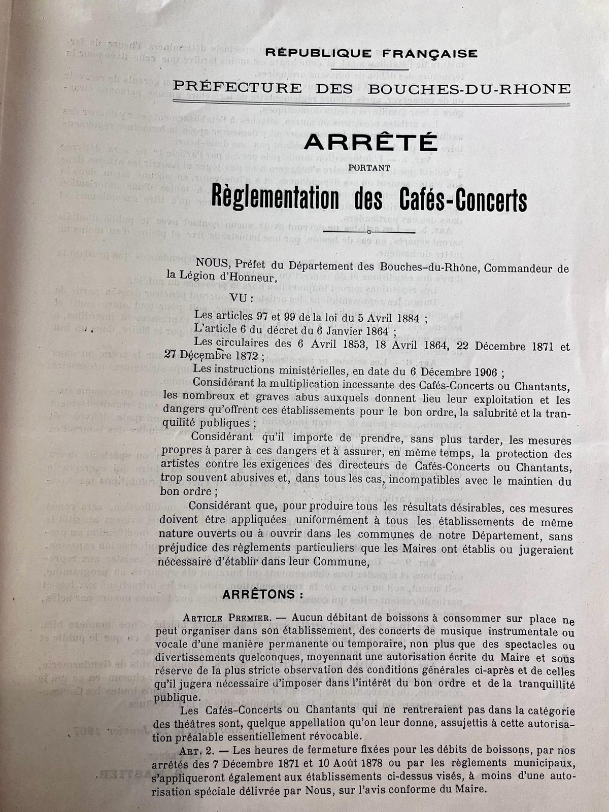 reglementaton des cafés concert