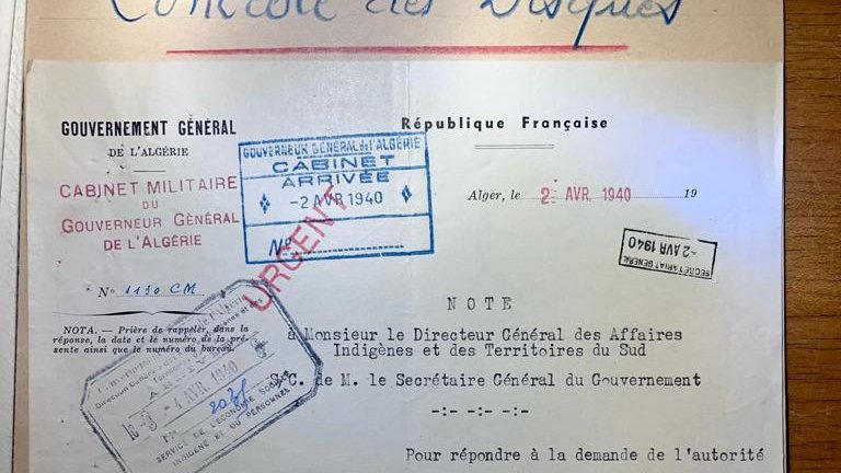 Médiathèque Gouvernement général Algérie - Demande de renseignement pour la diffusion des émissions radio aux militaires algériens - 2 avril 1940 - Contrôle des disques